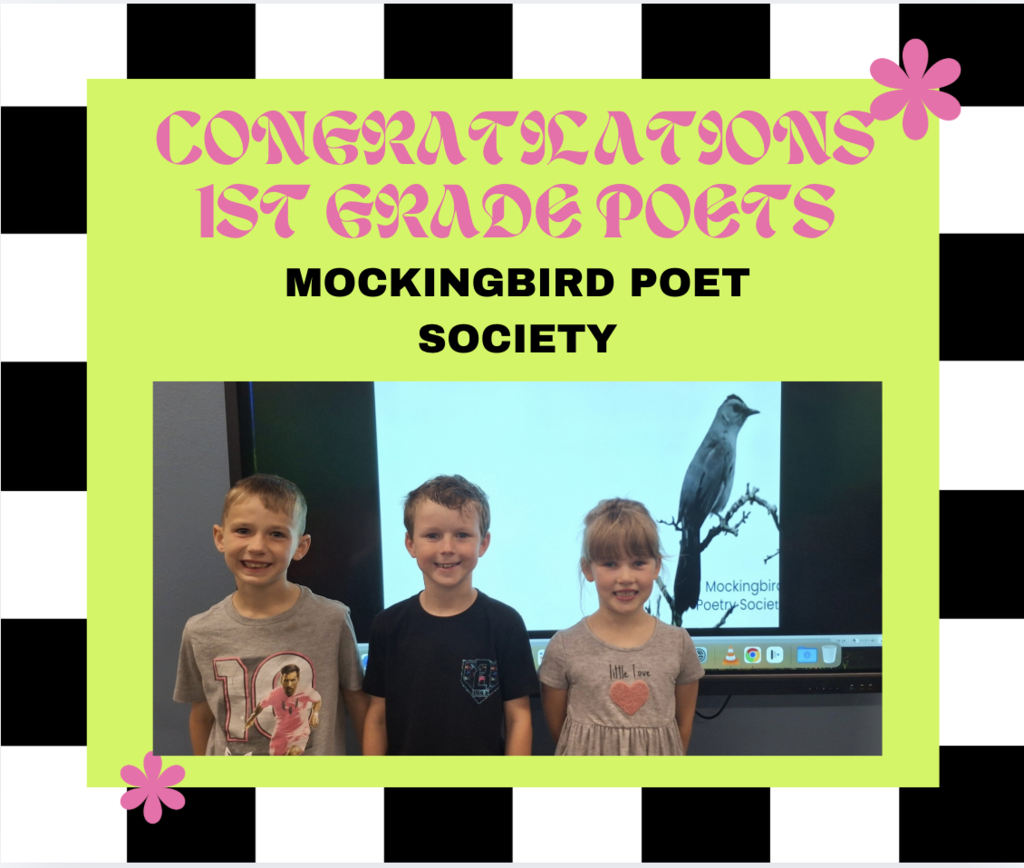 🎉🎉🎉Congratulations 🎉🎉🎉 are in order for 3 of our 1st grade Mockingbird Poetry Society Winners.